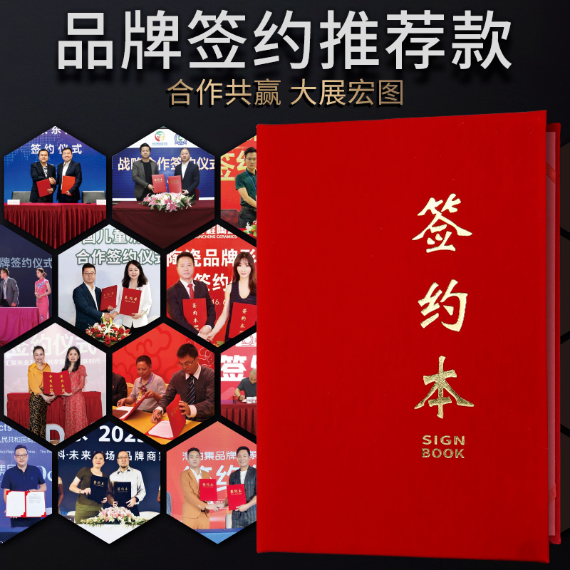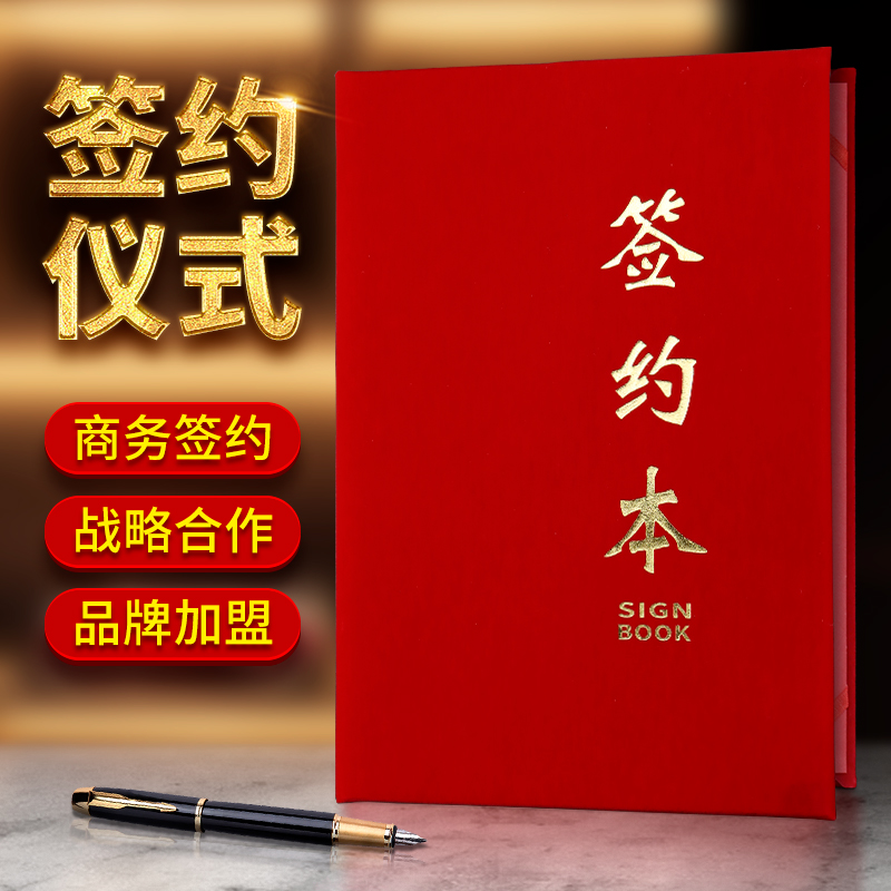 签约本定制红色签约书文件夹皮面合同本签约簿商务红本签约册绒面高档a4合约本签约仪式 本企业加盟合作协议书