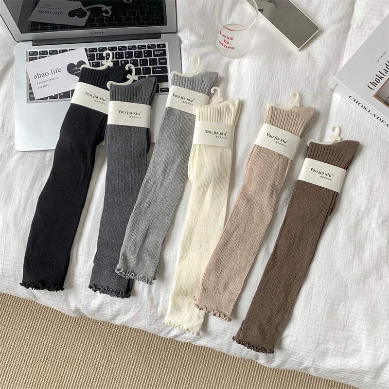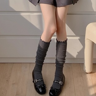 薄款 夏季 jk长筒女士美腿堆堆透气 配小皮鞋 花边小腿袜女黑色春夏款