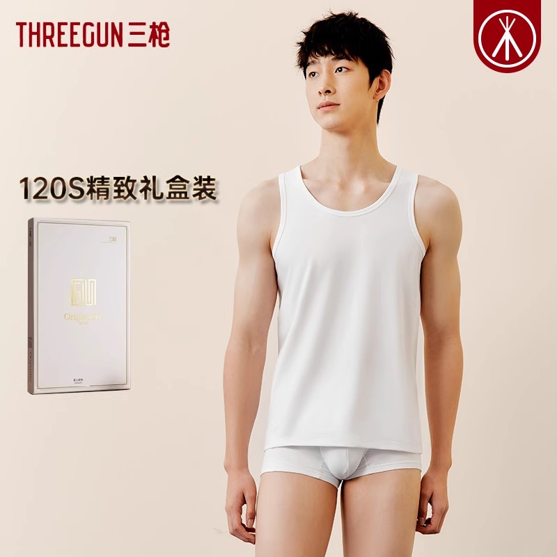 超细背心无袖 男打底衫 汗衫 春夏季 运动长绒棉薄款 三枪120S高支男士
