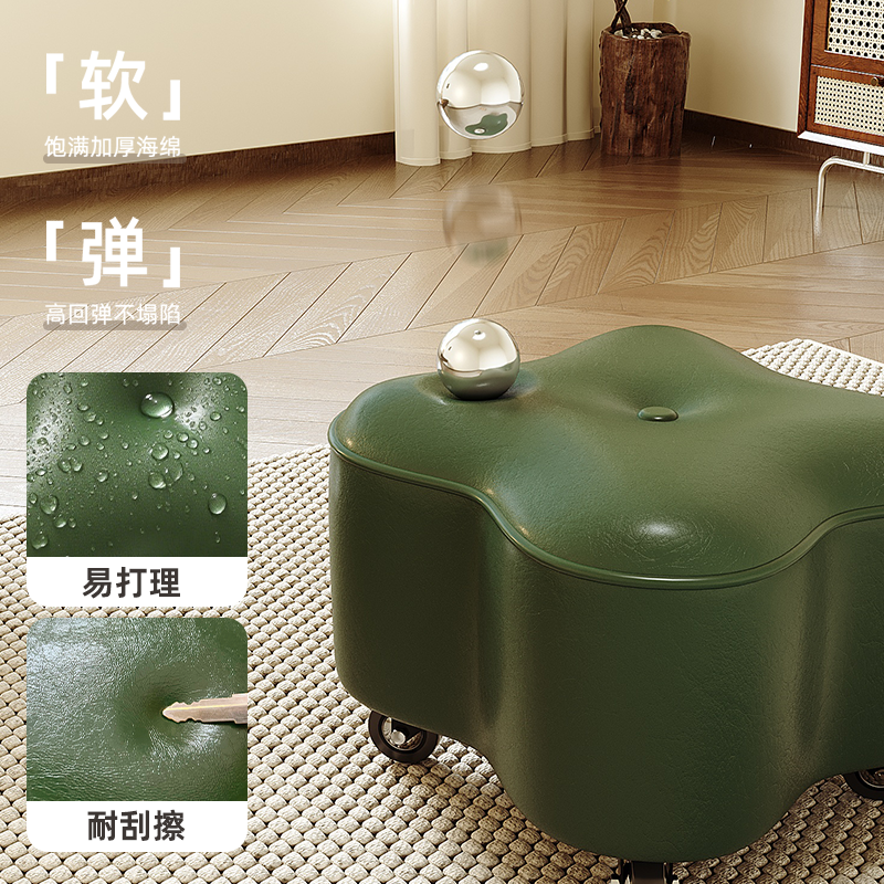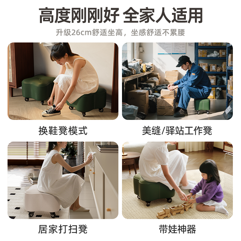 万向轮小凳子家用矮凳实木靠背椅子带滑轮坐凳茶几溜溜板凳换鞋 凳