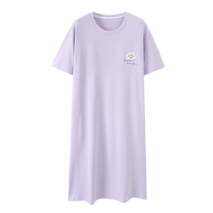 猫人100%纯棉女士睡裙2025夏新款 连衣裙家居服睡衣 卡通印花中长款