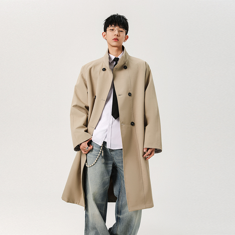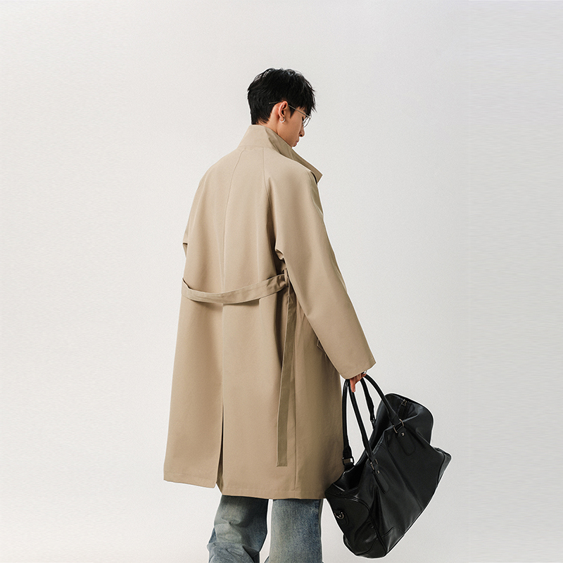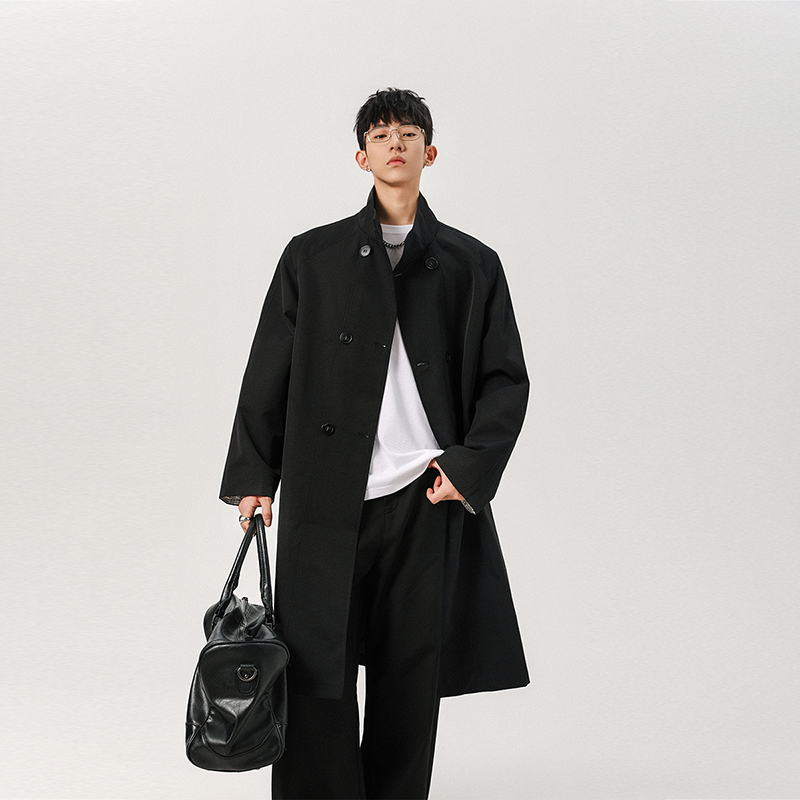 过膝无羊绒呢子风衣外套韩版 毛呢大衣男中长款 宽松落肩 新款 秋冬季
