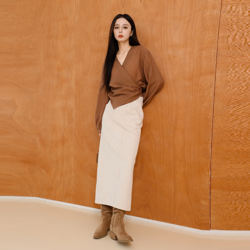 高腰显瘦a字开叉中长裙裤 修身 螺纹半身裙女春秋外搭2024新款 法式