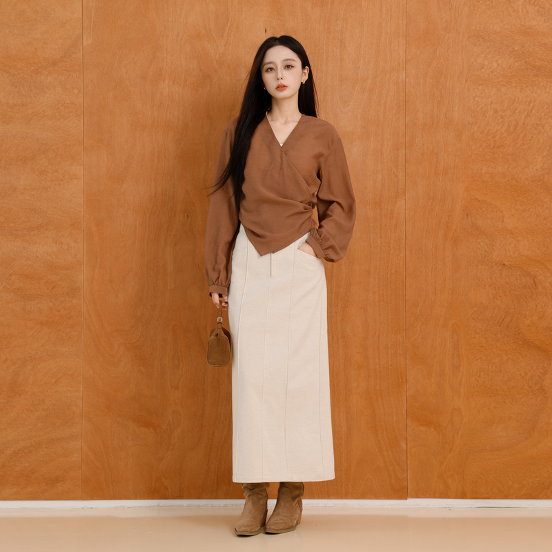 日系复古超好看半身裙子女士春秋装 小个子高腰显瘦夹棉A字裙 新款
