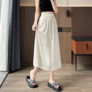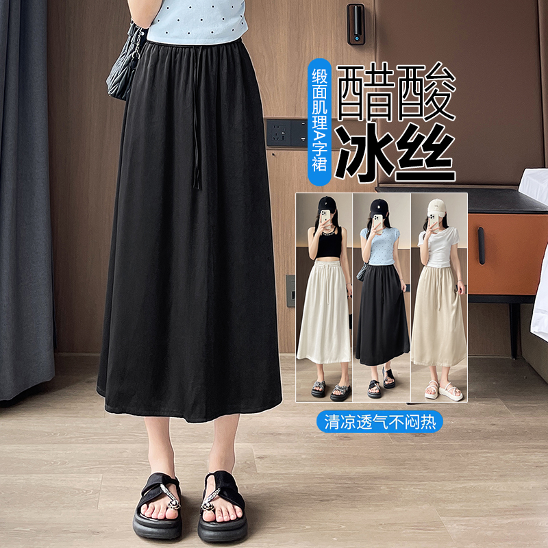 a字裙宽松垂坠感包臀裙 高腰显瘦中长款 醋酸缎面半身裙女夏季 薄款