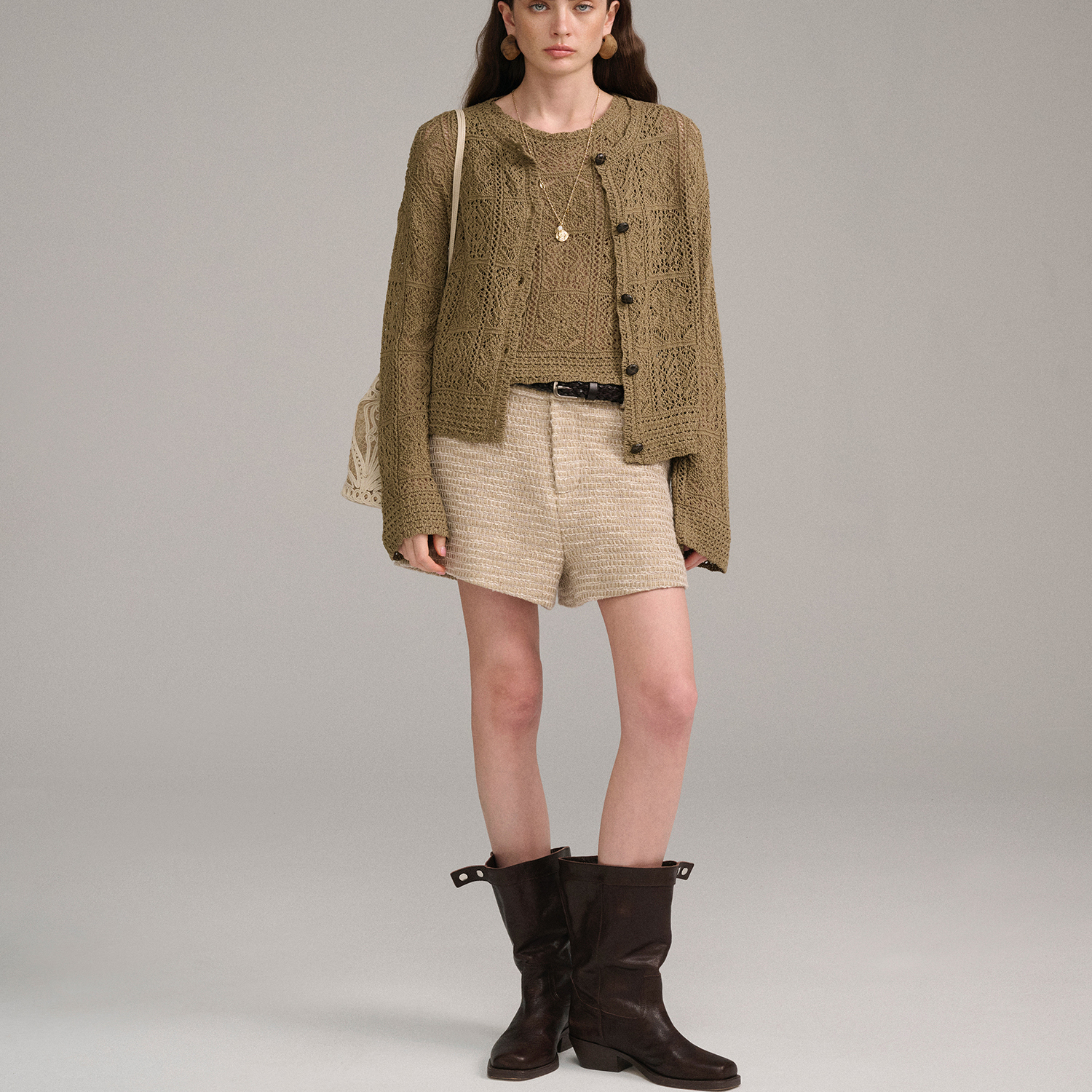 背心套装 女老钱风镂空钩针提花针织毛衣圆领开衫 Grenat秋季