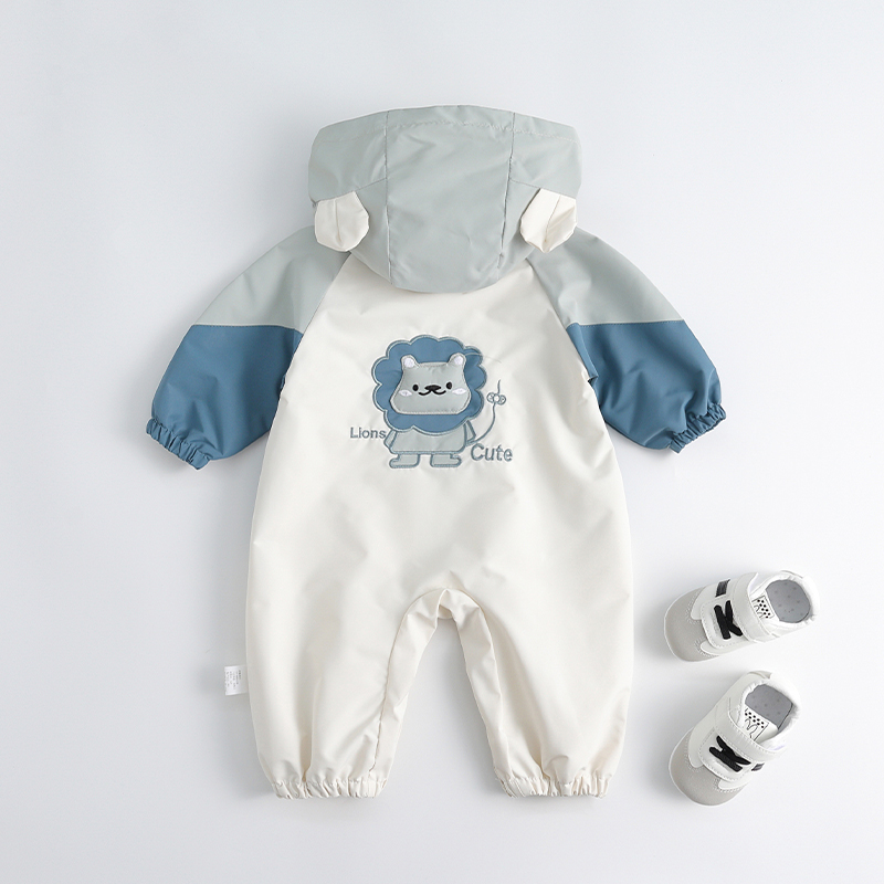 kmi婴儿秋春外套婴幼儿外出抱衣宝宝拼色卡通冲锋衣长袖 防风哈衣