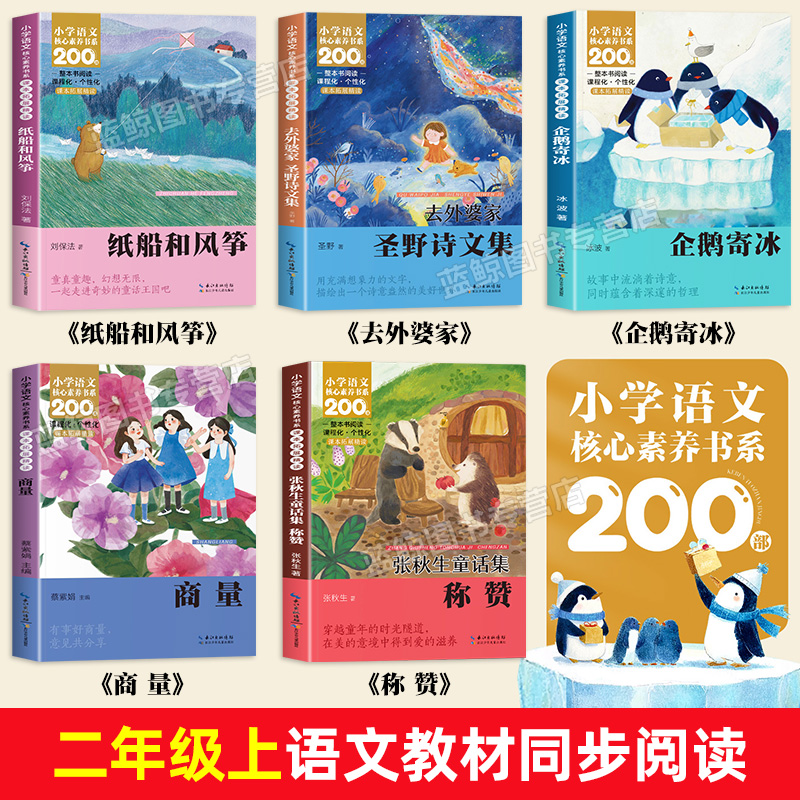 二年级上册全5册注音版 书籍 课本同步课外阅读小学语文核心素养书系课文作家作品系列纸船和风筝称赞商量去外婆家企鹅寄冰老师推荐