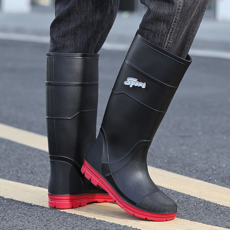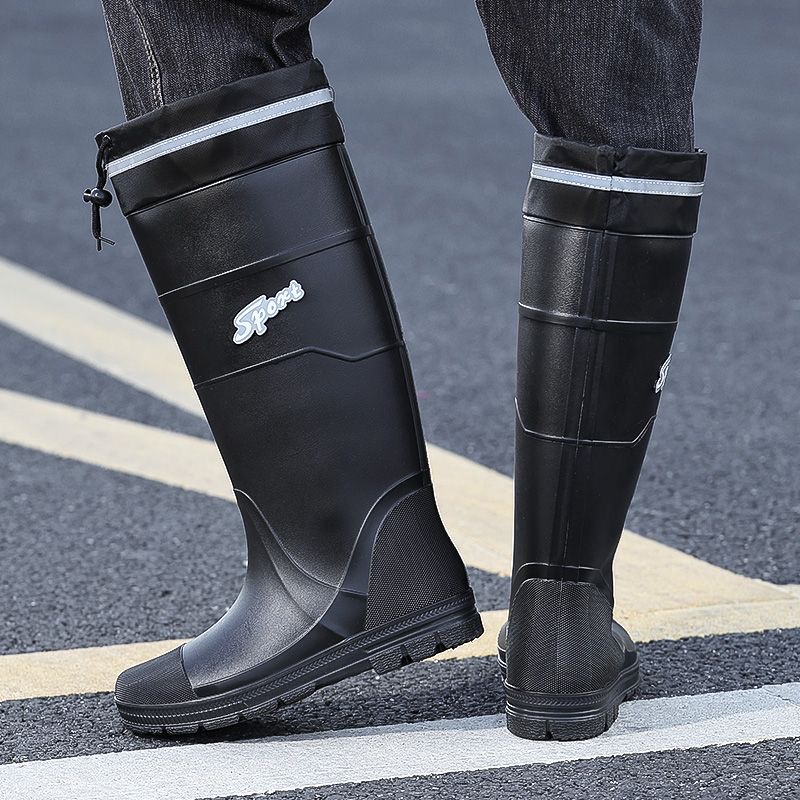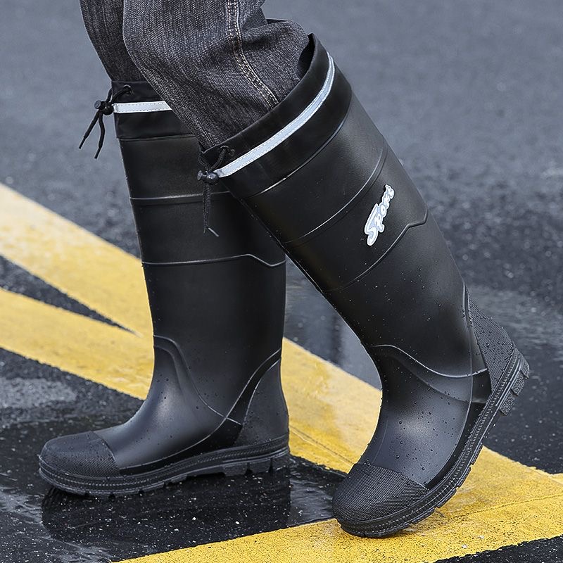 户外钓鱼下水雨靴厚底耐磨防水防滑高筒水鞋 束口抽绳雨鞋 长筒男士