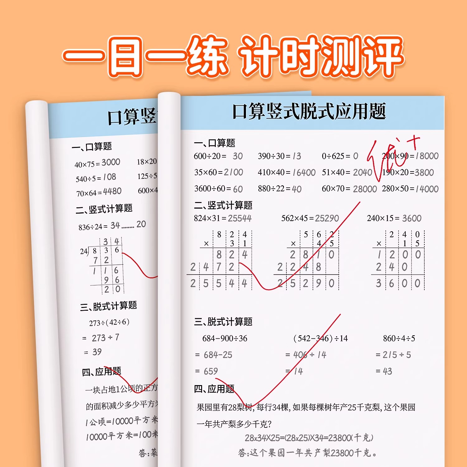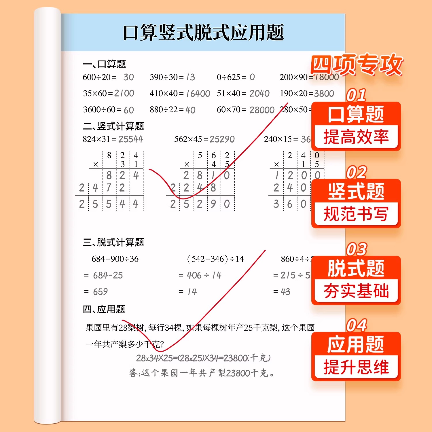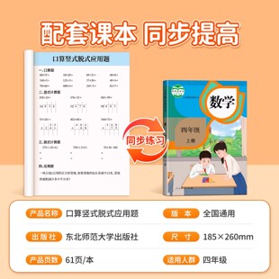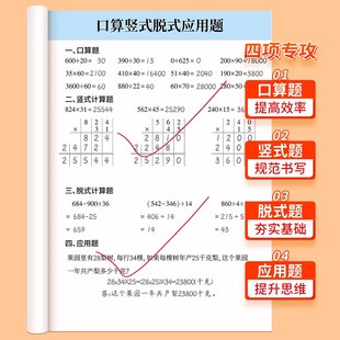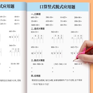 应用题思维专项训练同步练习册 竖式 四年级数学计算题强化训练口算天天练上册下册人教版 口算题卡每日一练小学4年级加减乘除法脱式