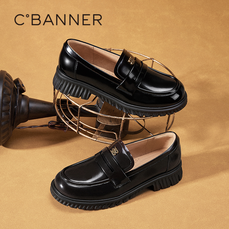 通勤增高深口单鞋 千百度漆皮厚底乐福鞋 黑色小皮鞋 新款 女2025秋季