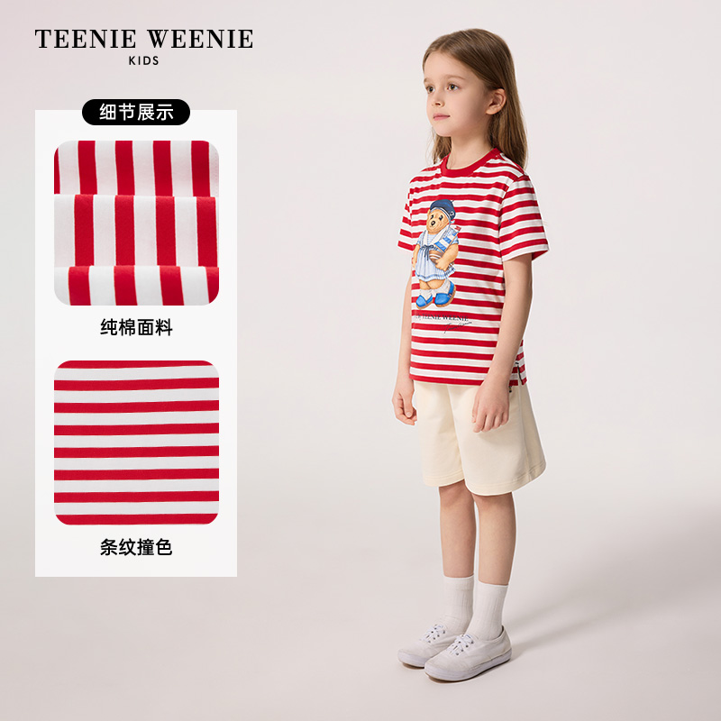 男女童休闲圆领条纹短袖 25春夏新款 T恤 Kids小熊童装 TeenieWeenie