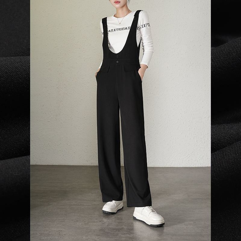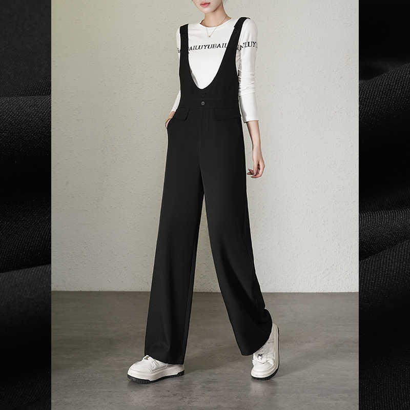 高腰显瘦直筒宽松阔腿连体长裤 韩版 女2025春夏新款 减龄牛仔背带裤