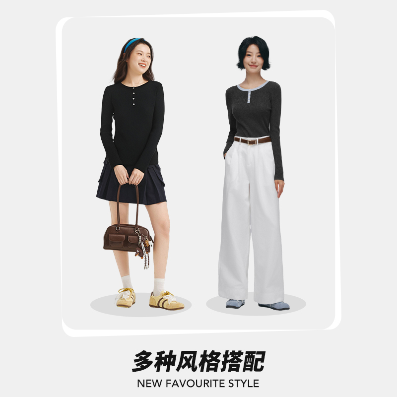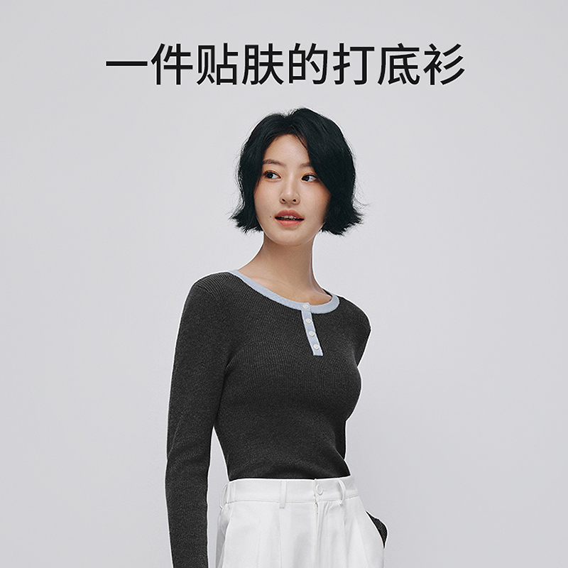 上衣2025年秋季 贴身内搭打底衫 新款 针织衫 圆领修身 热风女士打底衫
