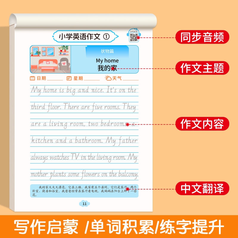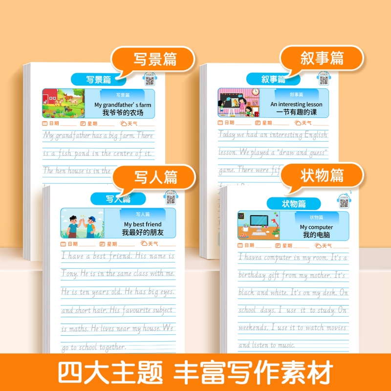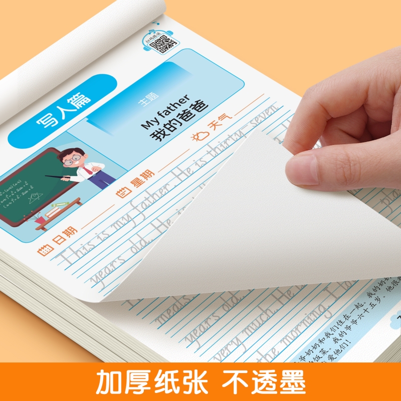 小学英语作文练字帖英语描红字帖小学生专用三四五六年级英文看图写话写作入门意大利斜体衡水体儿童练字本一句话日记同步人教版