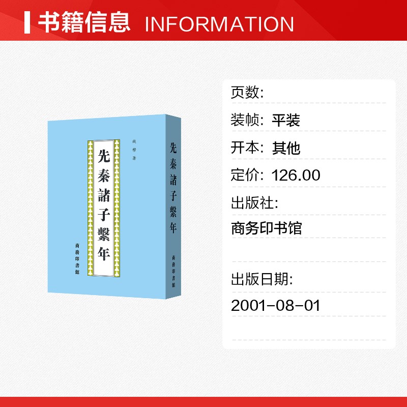 钱穆 图书籍 著 新华书店正版 商务印书馆 先秦史社科 先秦诸子繫年