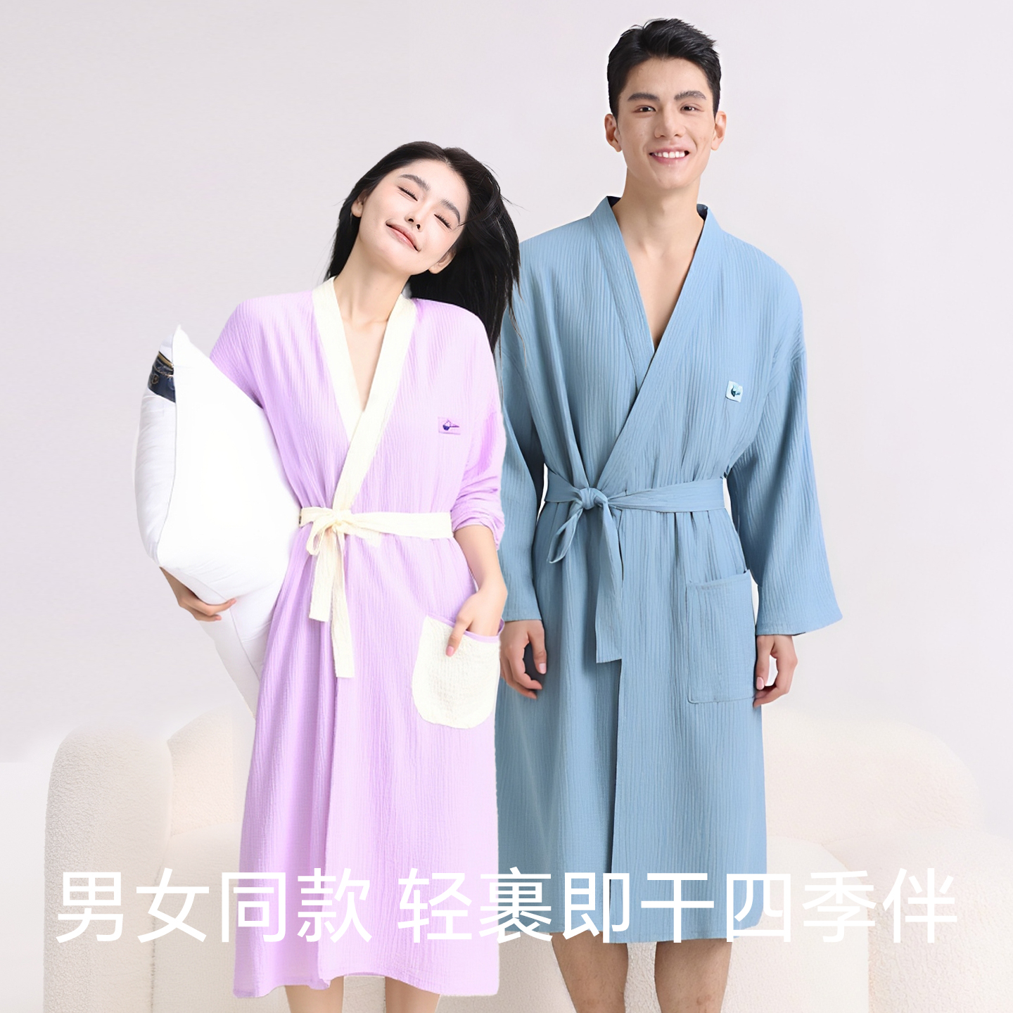 情侣纯棉浴袍纱布吸水速干浴衣亲肤透气男女宽松家居服四季 睡袍