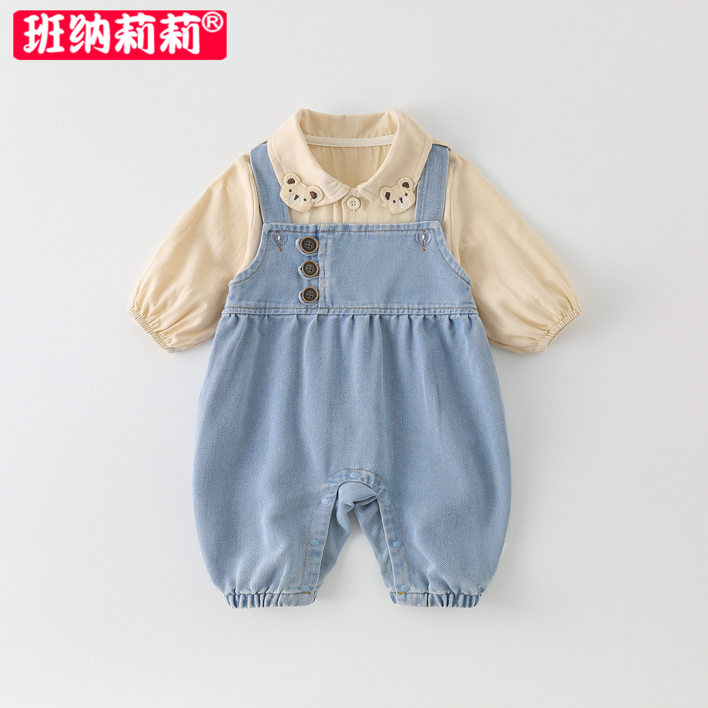 外出秋装 男一岁宝宝秋天衣服韩版 套装 婴幼儿春秋连体衣牛仔背带裤