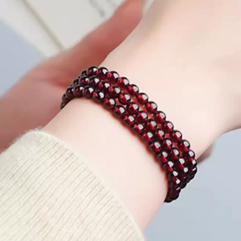 爆款 饰饰品老矿七夕 仿酒红石榴石手链单圈手串三圈净体干净女人装