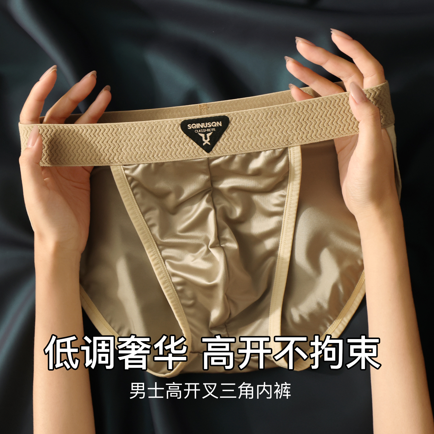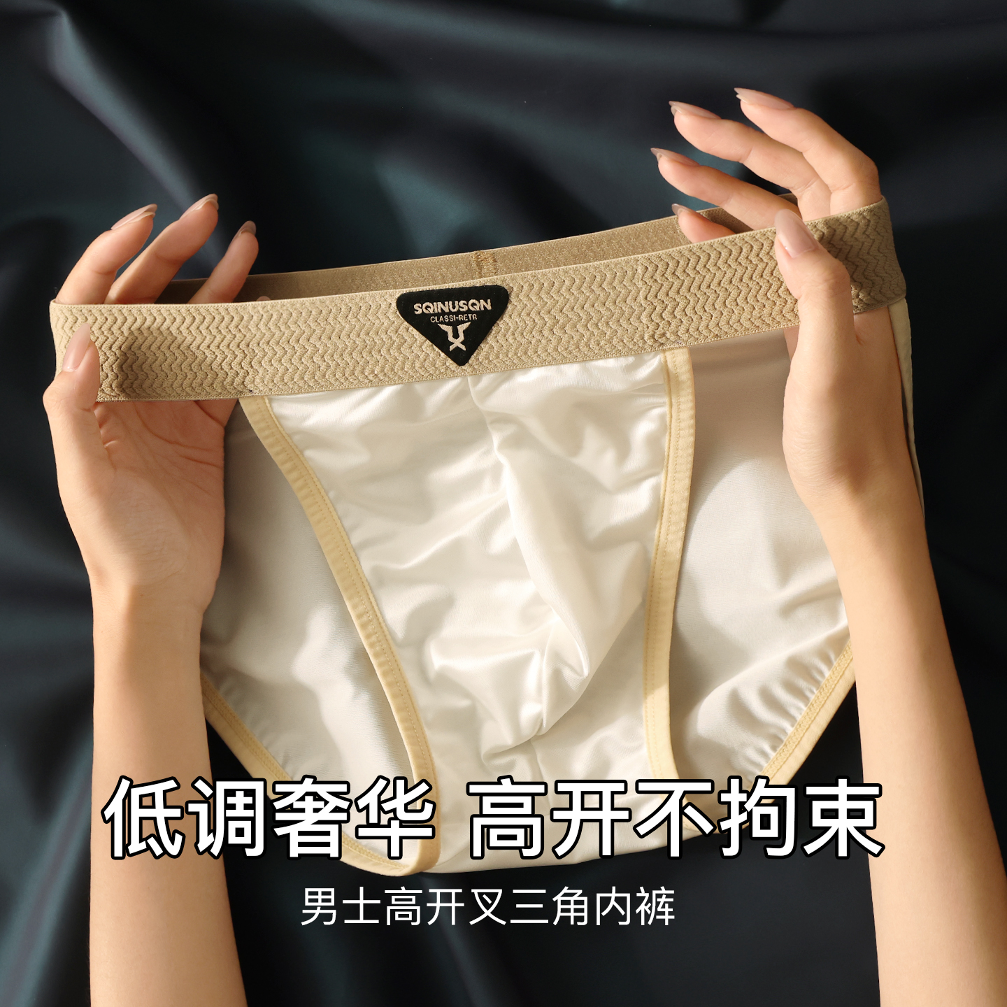 内裤 青年防磨凉感冰丝男士 衩透气抗菌底裤 诚创优棉轻奢缎面三角裤