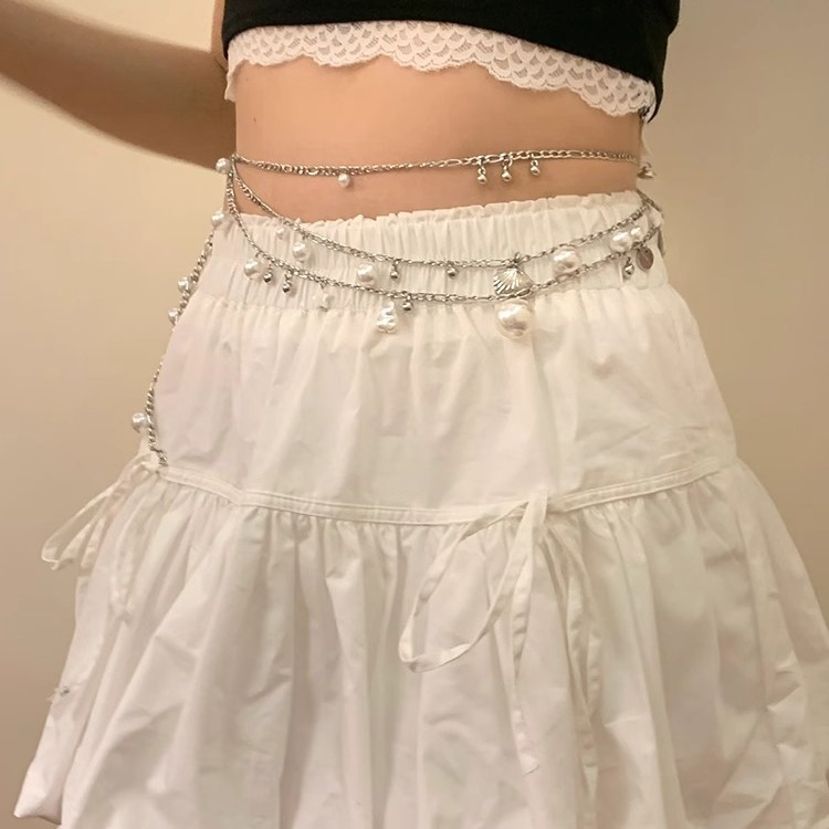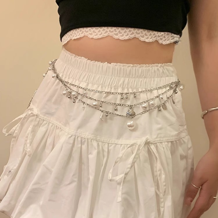 珍珠贝壳配裙子腰链超仙法式 优雅叠带多层轻奢腰带高级感链条项链