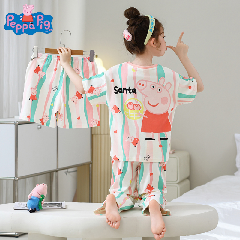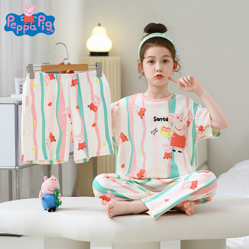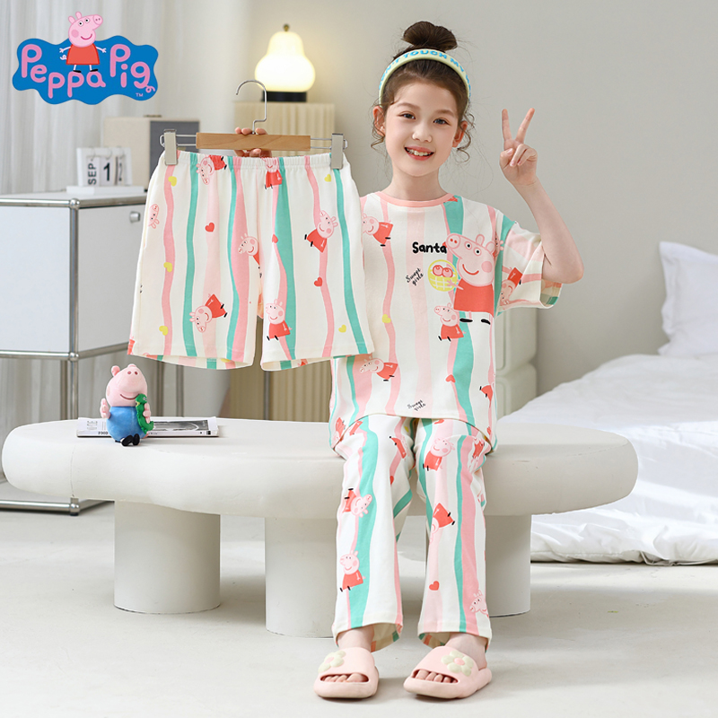 洋气宝宝家居服套装 小猪佩奇睡衣儿童夏季 夏款 短袖 女童三件套薄款