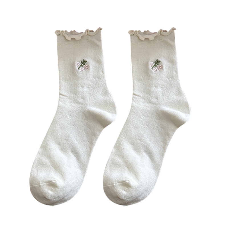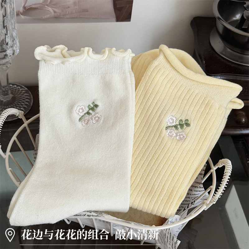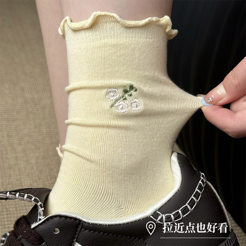 白色无骨秋冬堆堆袜 中筒袜纯棉月子袜2025新款 100%棉袜子女款 秋季