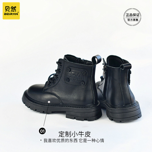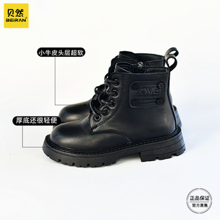 贝然儿童鞋 小牛皮马丁靴软皮矮靴男女童骑士靴单棉靴秋冬保暖加绒