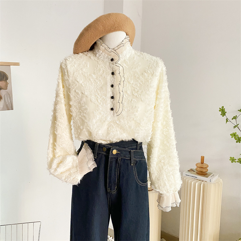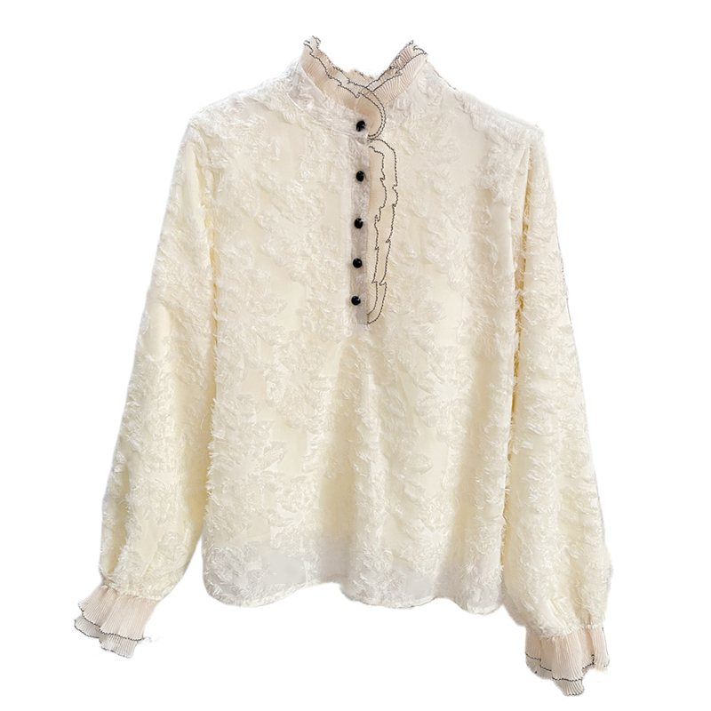 内搭小衫 蕾丝打底衫 上衣保暖 女秋冬气质长袖 加绒加厚木耳立领衬衫