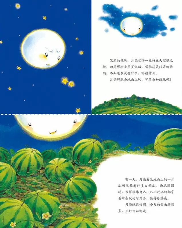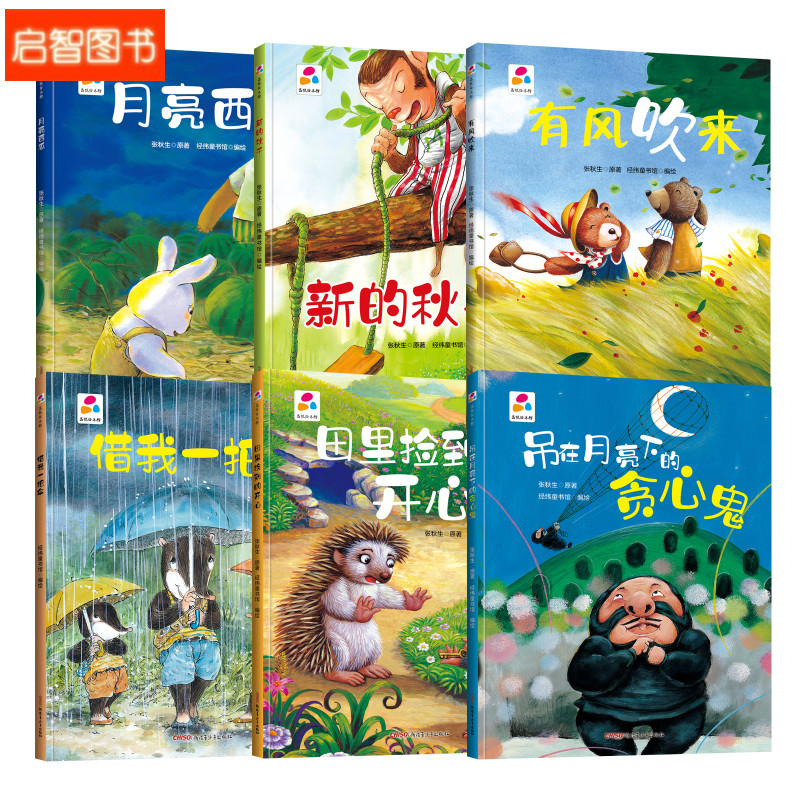 绘本3 月亮西瓜有风吹来新 开心全6册幼儿园硬壳硬皮精装 贪心鬼田里捡到 6岁儿童故事绘本图画书不注音图多字少 秋千吊在月亮下