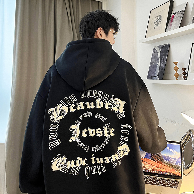 oversize连帽上衣 宽松大码 藏青色字母印花卫衣男女春秋季 2025新款