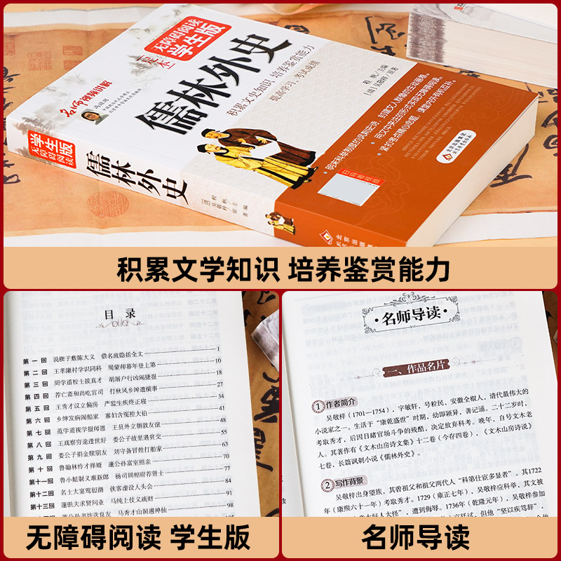 完整版 原著无删减版 儒林外史 吴敬梓 初中生9年级下语文教材配套无障碍阅读中国古典文学小说九年级下课外阅读书目简爱 正版