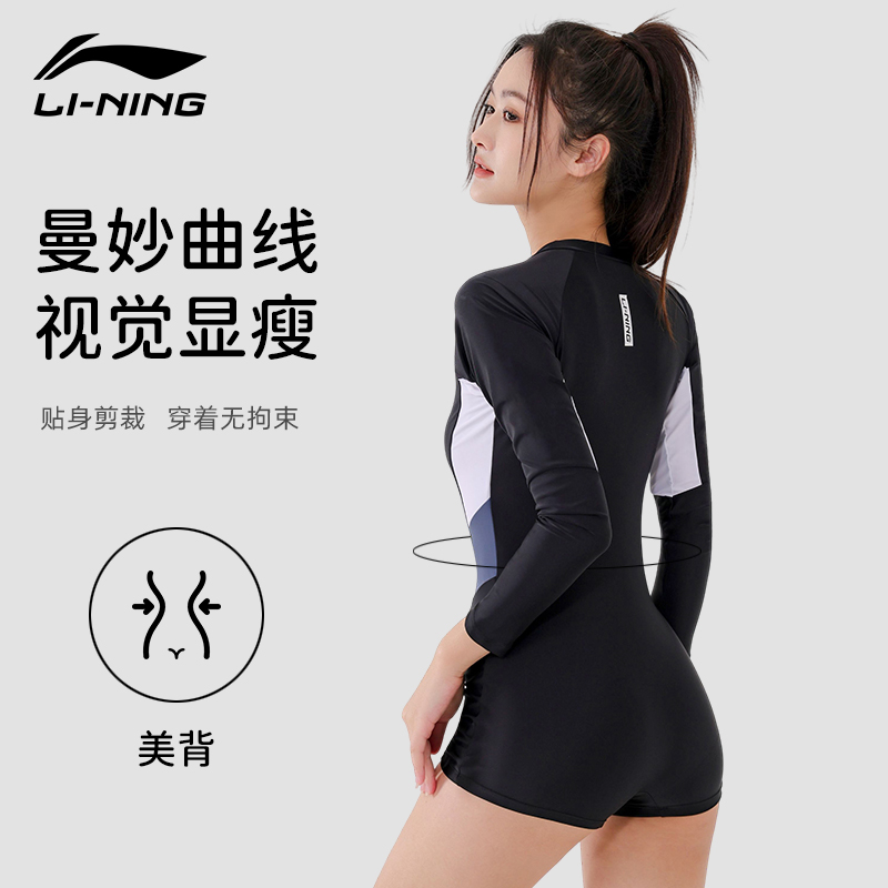 冲浪服女士大码 2025新款 防晒泳装 李宁泳衣女连体保守游泳衣长袖