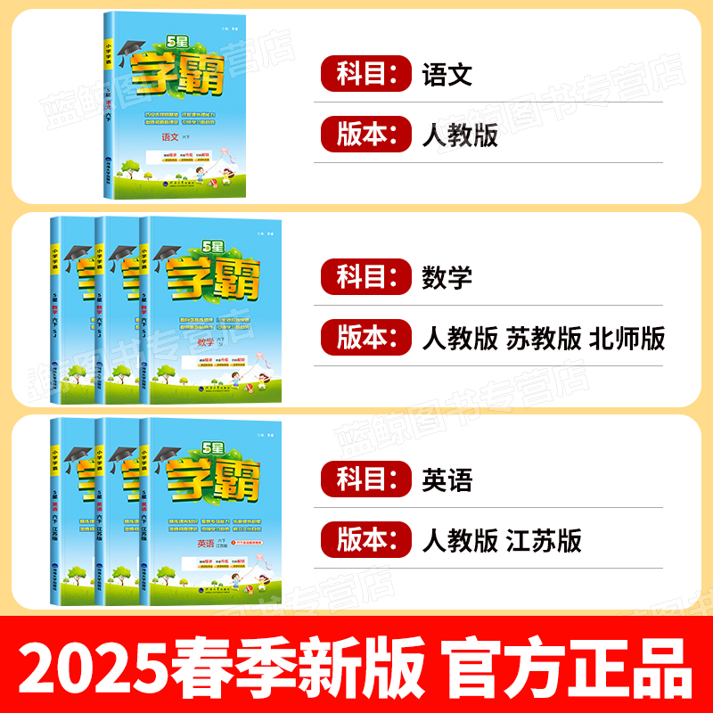 小学学霸一年级下册二三四五六年级下学期语文数学英语全套人教版 北师大译林练习册同步训练提优大试卷经纶江苏专用 苏教版