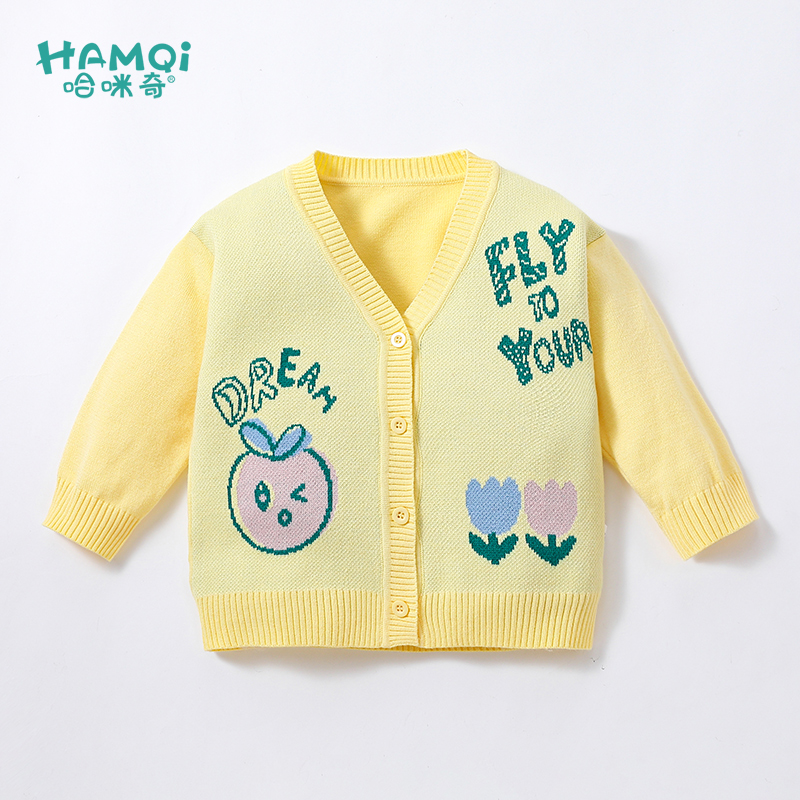Basic 女秋冬撞色纽扣设计感毛衣 House百家好复古彩点V领针织开衫