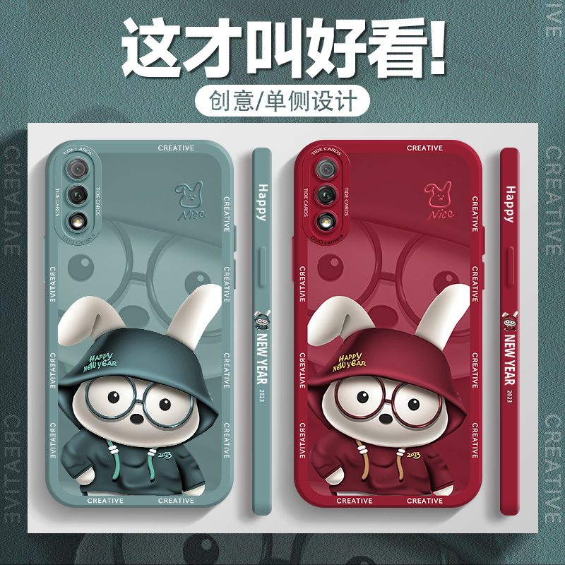 适用于华为荣耀9x手机壳男新款 侧边9xpro全包防摔honor天使眼液态硅胶软壳保护套九X潮牌卡通pr0兔子外壳2023