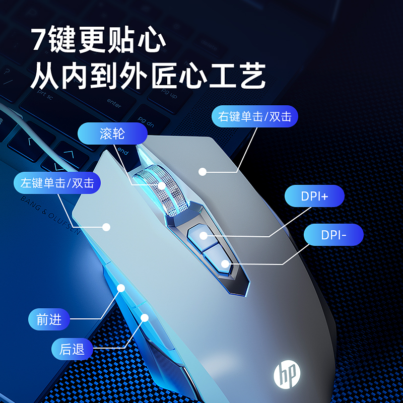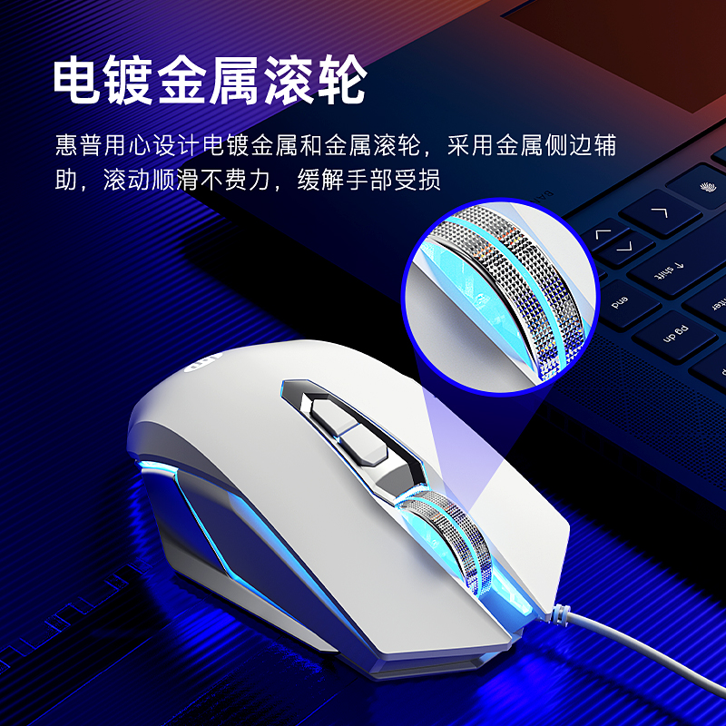 惠普专业游戏电竞鼠标静音办公鼠标有线lol吃鸡CF宏笔记本台式