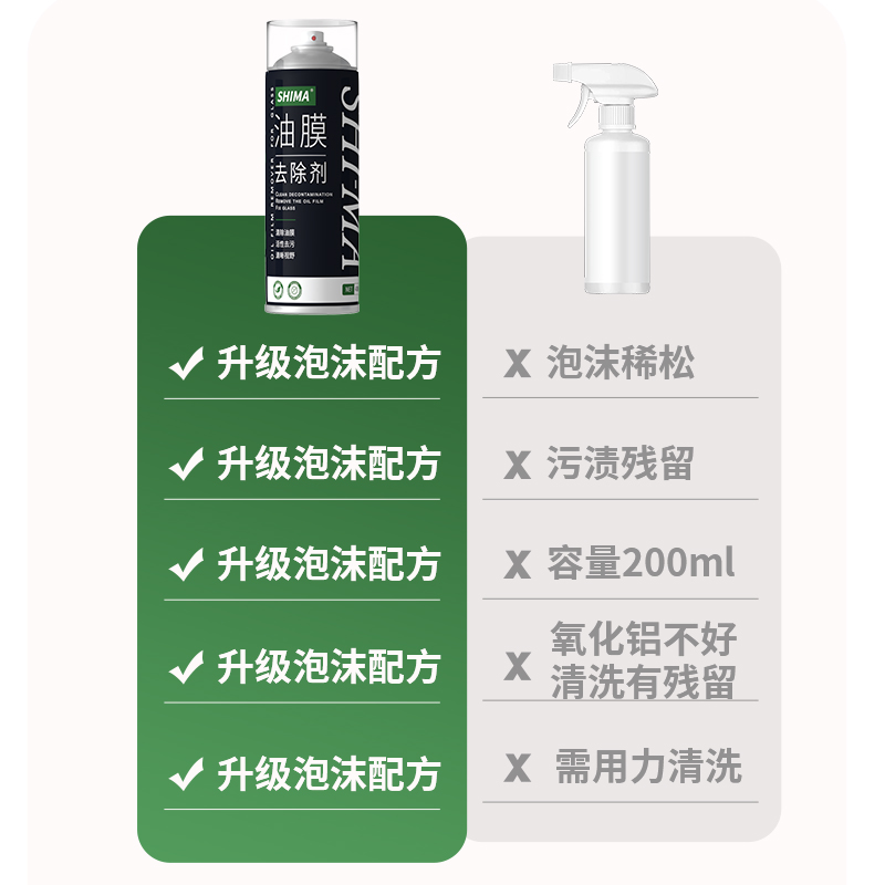 仕马汽车油膜清洁剂去除剂前挡风玻璃后视镜防雨泡沫去油膜清洗剂