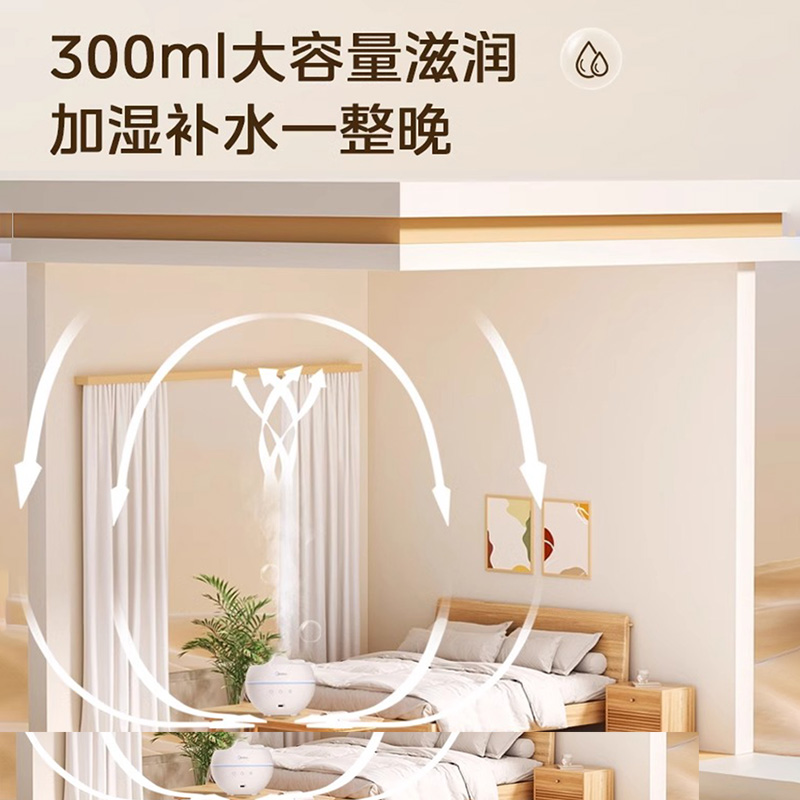 美 小型加湿器卧室内静音家用房间迷你办公室桌面宿舍学生空气婴儿孕妇香薰机精油一体生日礼物女生2025新款