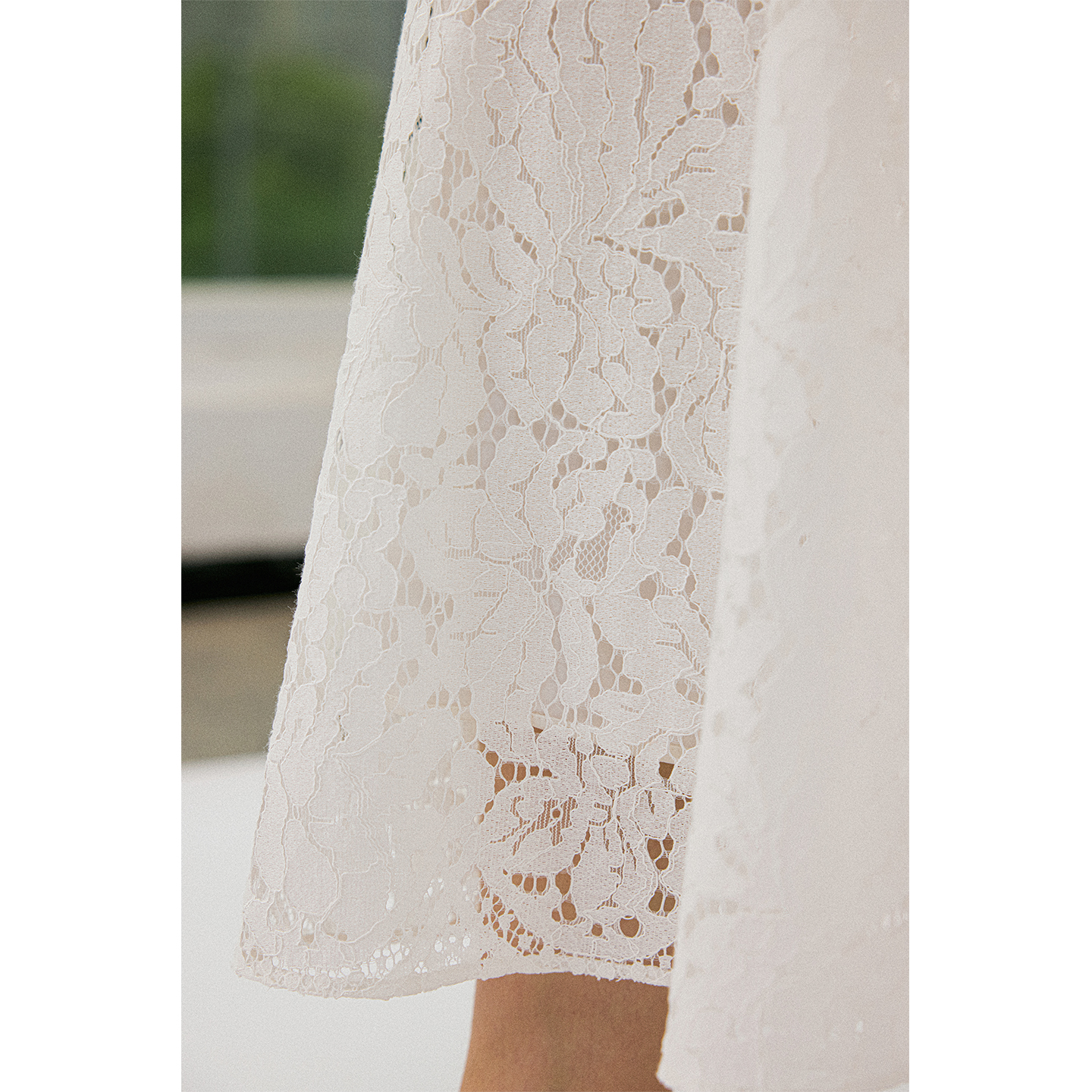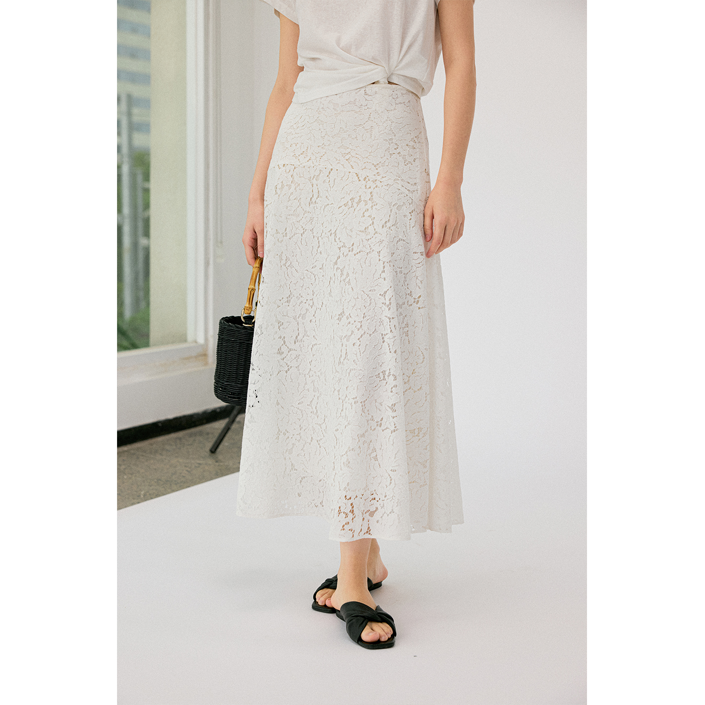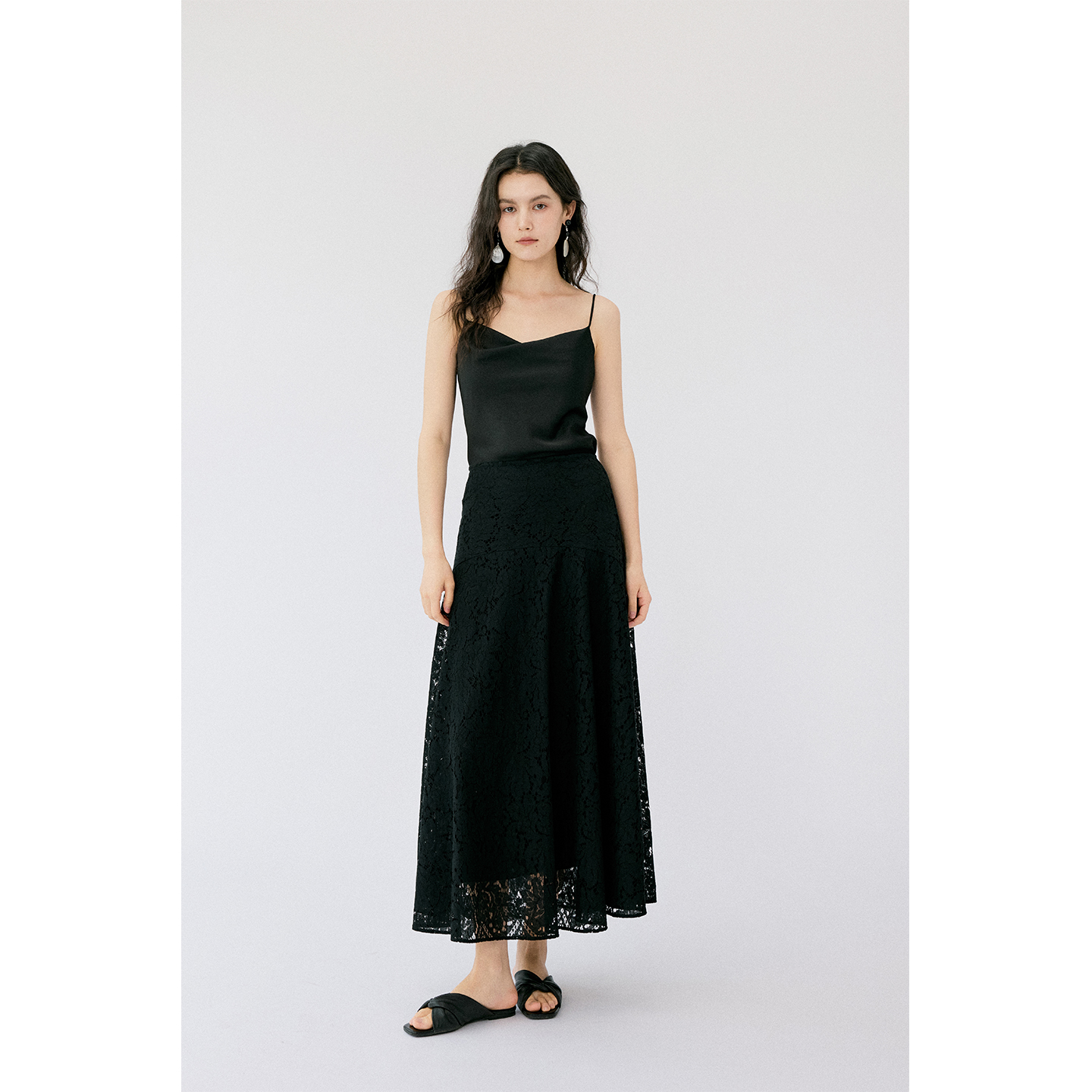 森马半身裙女松紧腰A字裙气质夏季 拼接蕾丝波点长裙优雅 2025新款