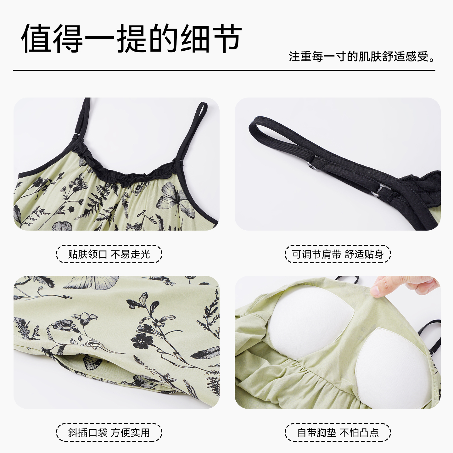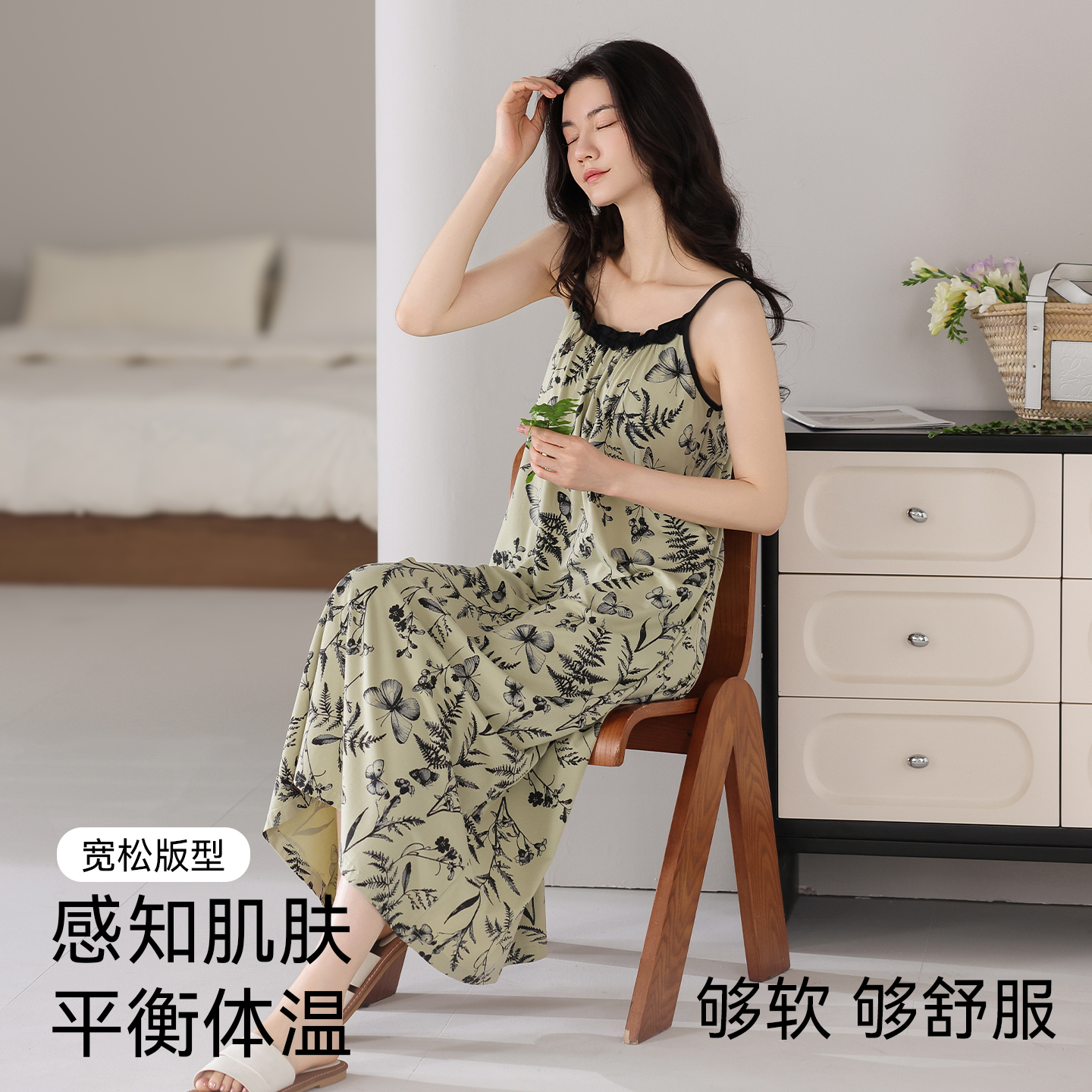 莫代尔吊带睡裙女带胸垫夏季 凉感连衣裙子休闲可外出家居服 薄款