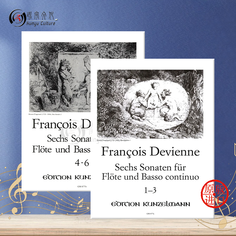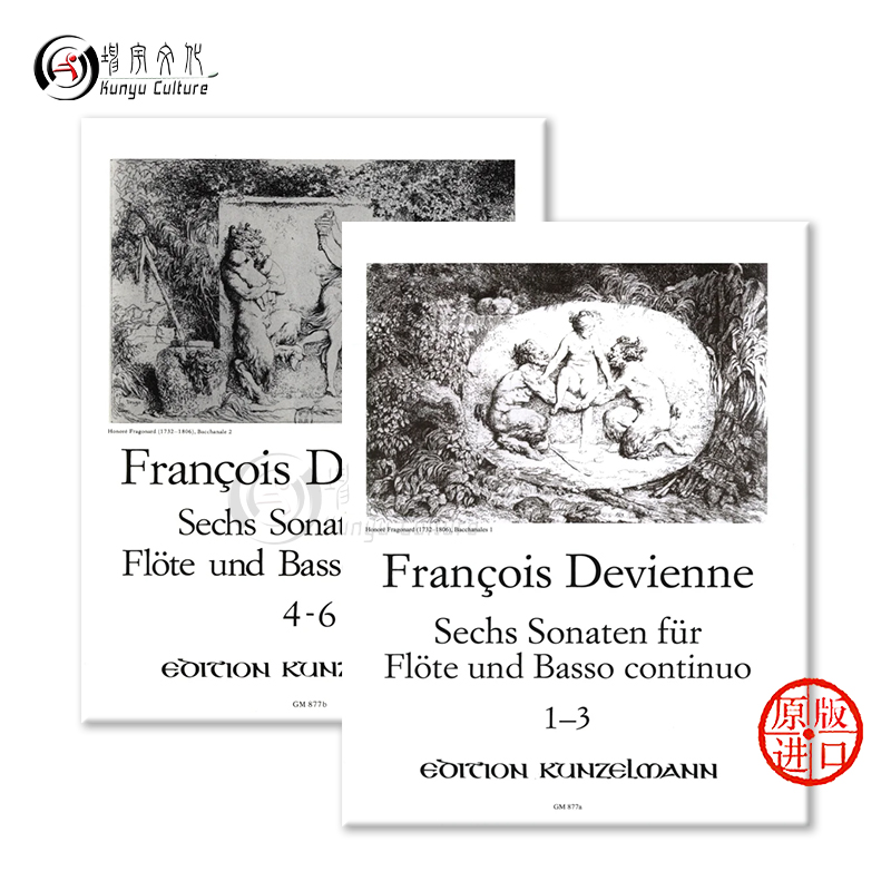 Flote Devienne 德维耶纳长笛与低音通奏奏鸣曲1 und GM877a Kunzelmann原版 continuo 全套共两册 877b 乐谱书 Basso Sonaten