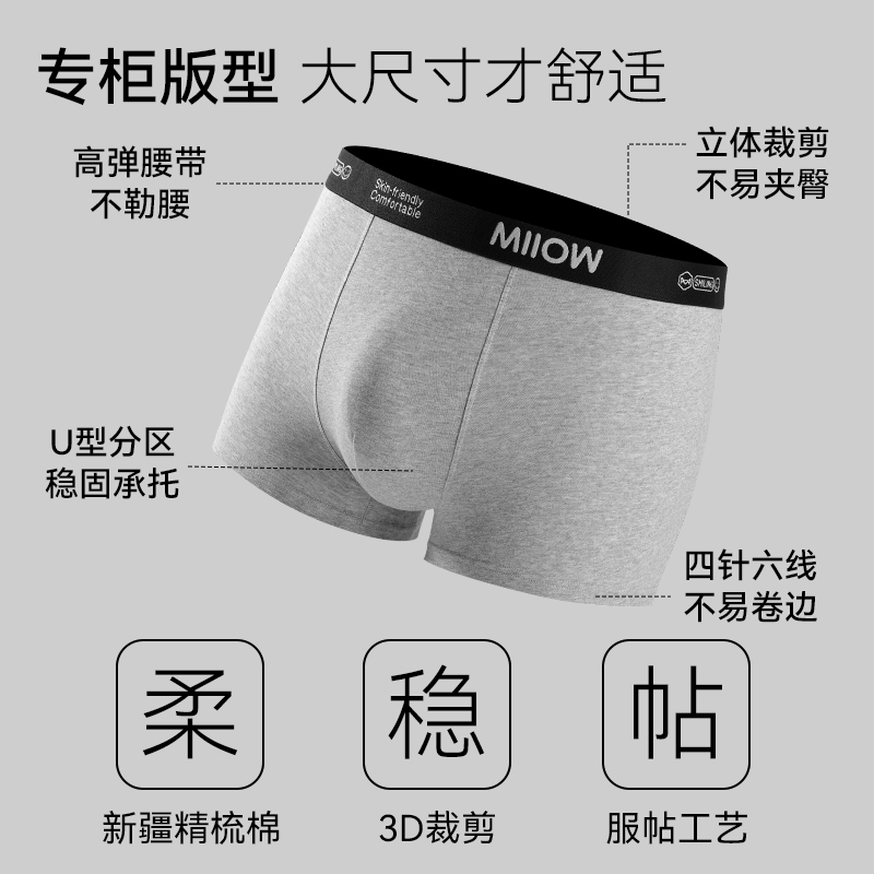 衩四角短裤 3件 纯棉透气裆裤 男士 男生 蕉内银皮300S平角内裤