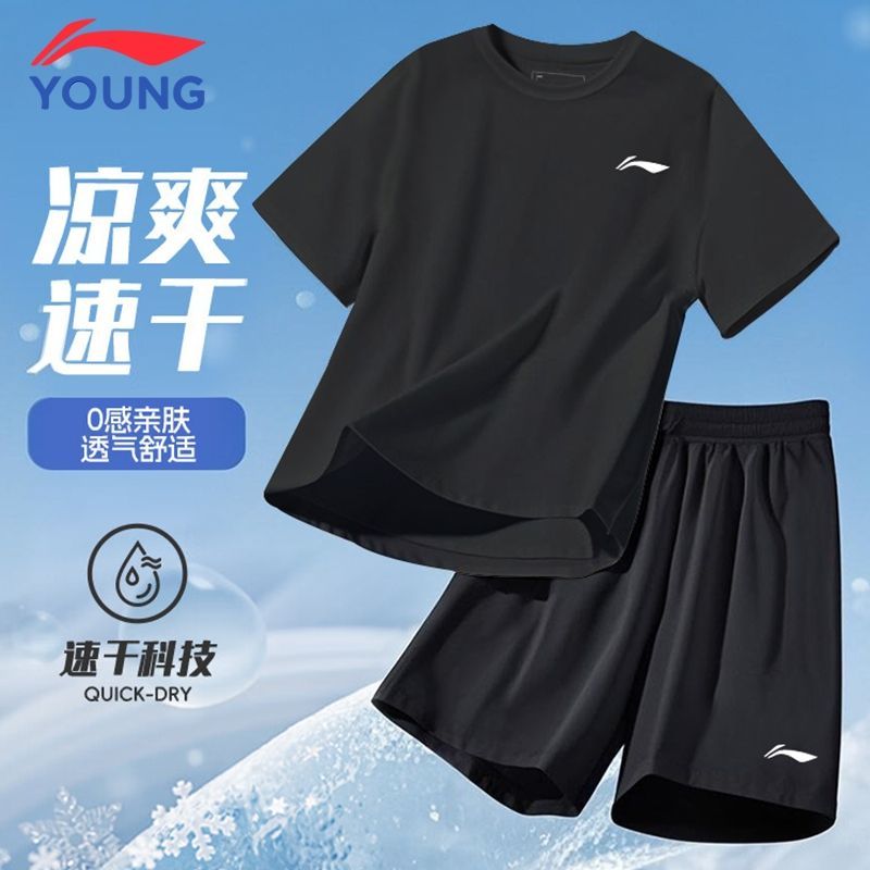 短裤 李宁速干运动套装 短袖 跑步T恤夏季 健身羽毛球篮球训练服 男士