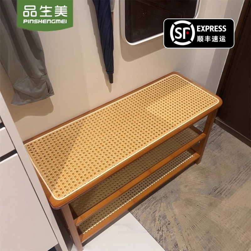 柜玄关鞋 凳楠竹制凳子民宿鞋 架进门口可坐 凳家用入户穿鞋 藤编换鞋