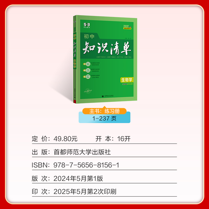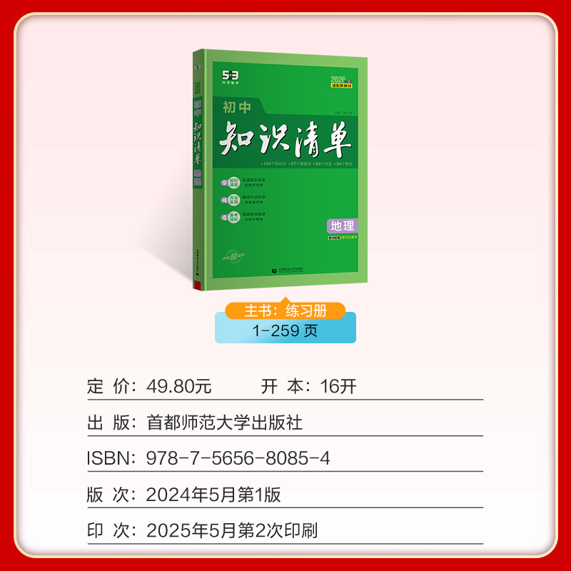 工具书 小五演算本 2册 赠小五贴纸 五三 2026全彩版 地理 生物 2赠品 初中知识清单套装 曲一线