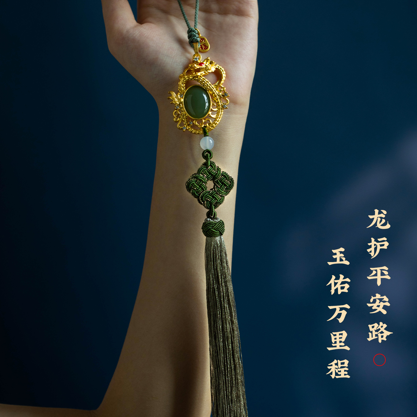龙瑞呈祥铜镀金车挂冰丝流苏 和田玉汽车挂件2025新款 感恩回馈
