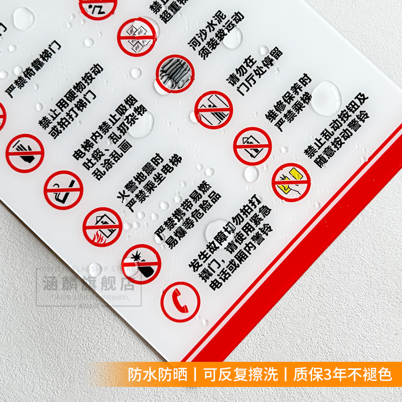 亚克力电梯安全使用须知提示牌标识墙贴货梯客梯文明乘梯须知标识牌警示标志贴注意事项乘坐乘梯制度牌贴