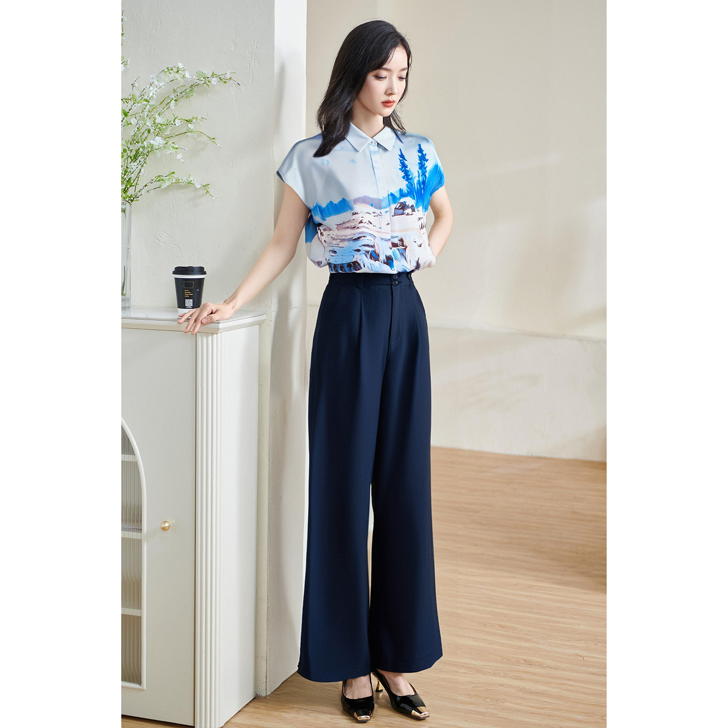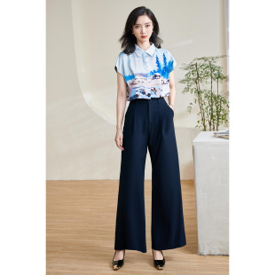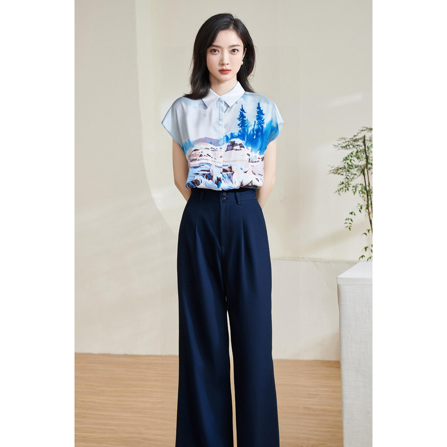 清凉一夏 小众设计 印花衬衫 直筒休闲裤 米思阳2025夏季 套装 新款