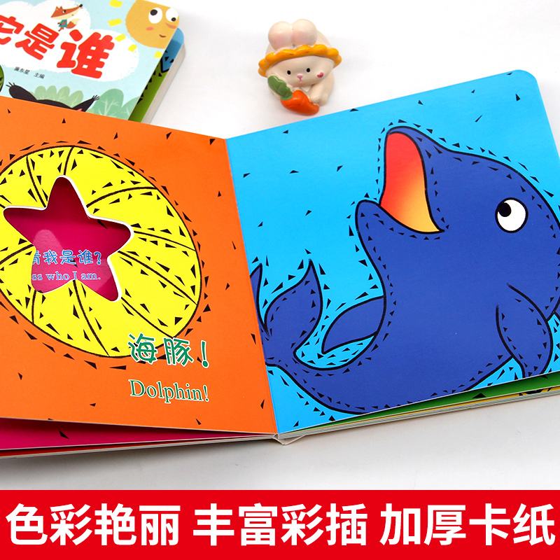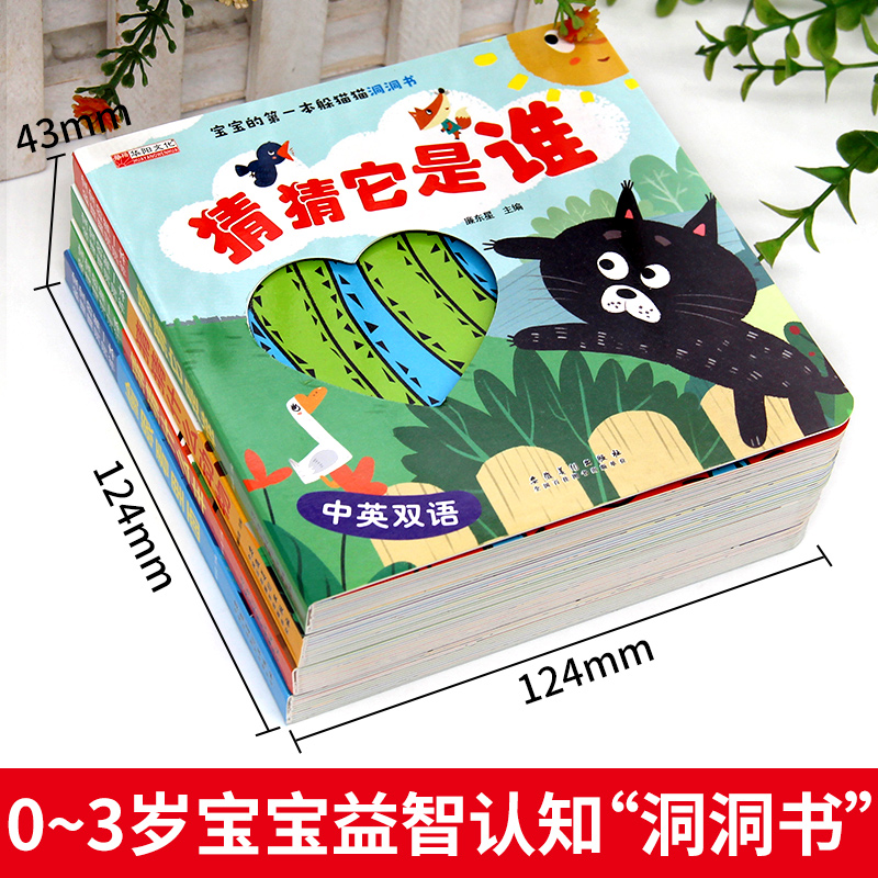 3岁撕不烂婴儿早教启蒙图书立体翻翻玩具 猜猜这是谁儿童益智启蒙认知奇妙洞洞书绘本0 宝宝 第一本躲猫猫中英双语游戏书全套4册